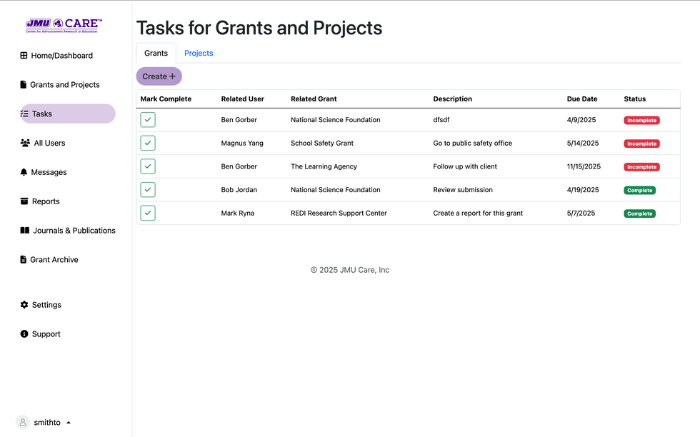 As part of a semester-long interdisciplinary capstone, I collaborated with a team of CIS and Media Arts and Design majors to design and develop a grant tracking system for the Center for Advancement of Research in Education (CARE). Our goal was to transform CARE’s outdated workflow—previously managed through emails and spreadsheets—into a streamlined, centralized platform.